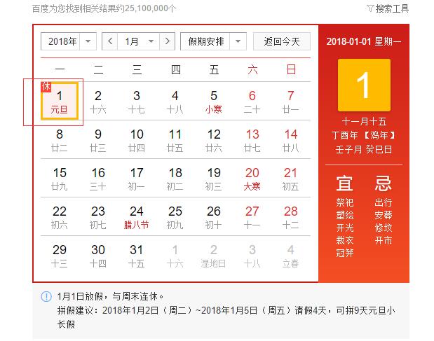 一、2018年元旦节假期共3天,从2017年12月29日至2018年1月1日。其中,2018年1月2日(星期二)开始正常上班。