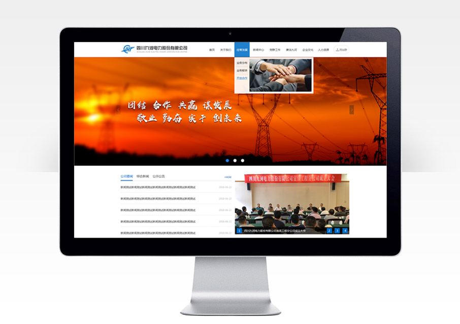 四川九河电力股份有限公司网站采用品牌定制建设,页面较多采用HTML5+CSS3,通过BANNER大图展公司的发展战略,同时通过下拉树形菜单让用户更加快捷的获取需要浏览的信息,项目计划于8月初上线,敬请期待,如果您的单位有网站建设需求,请与我们联系,服务热线:0831-5201666